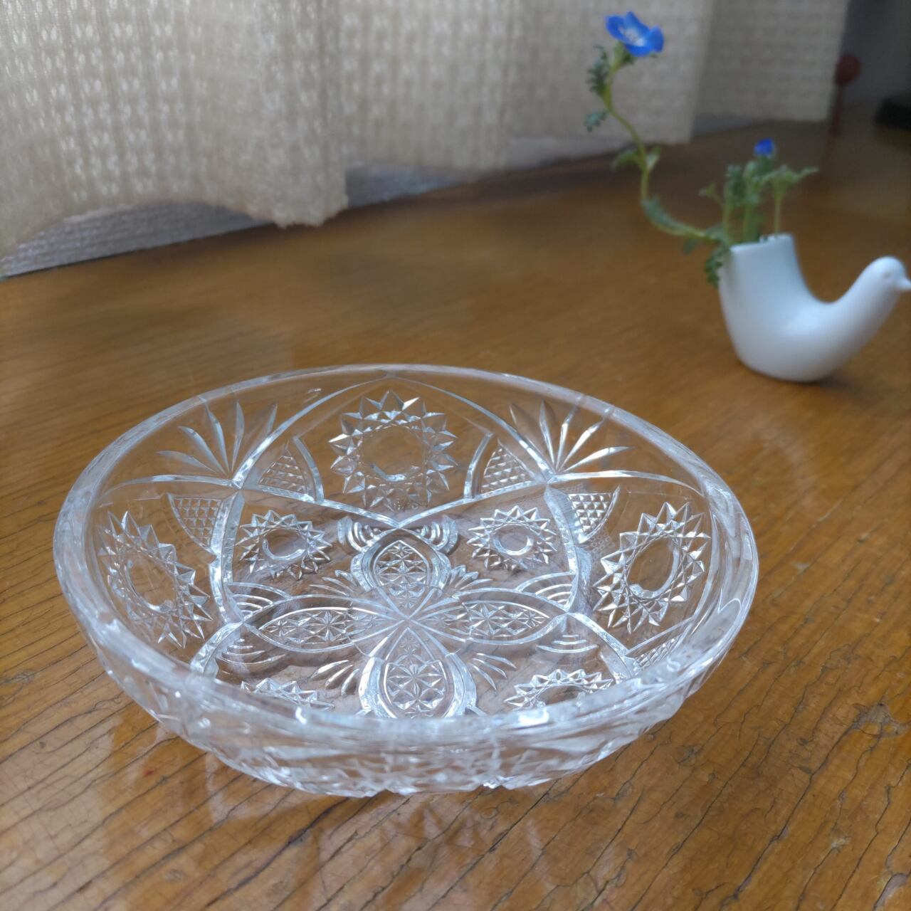 ガラスの影が織りなす美しさ、手毬のようなフォルムのガラスボウル。