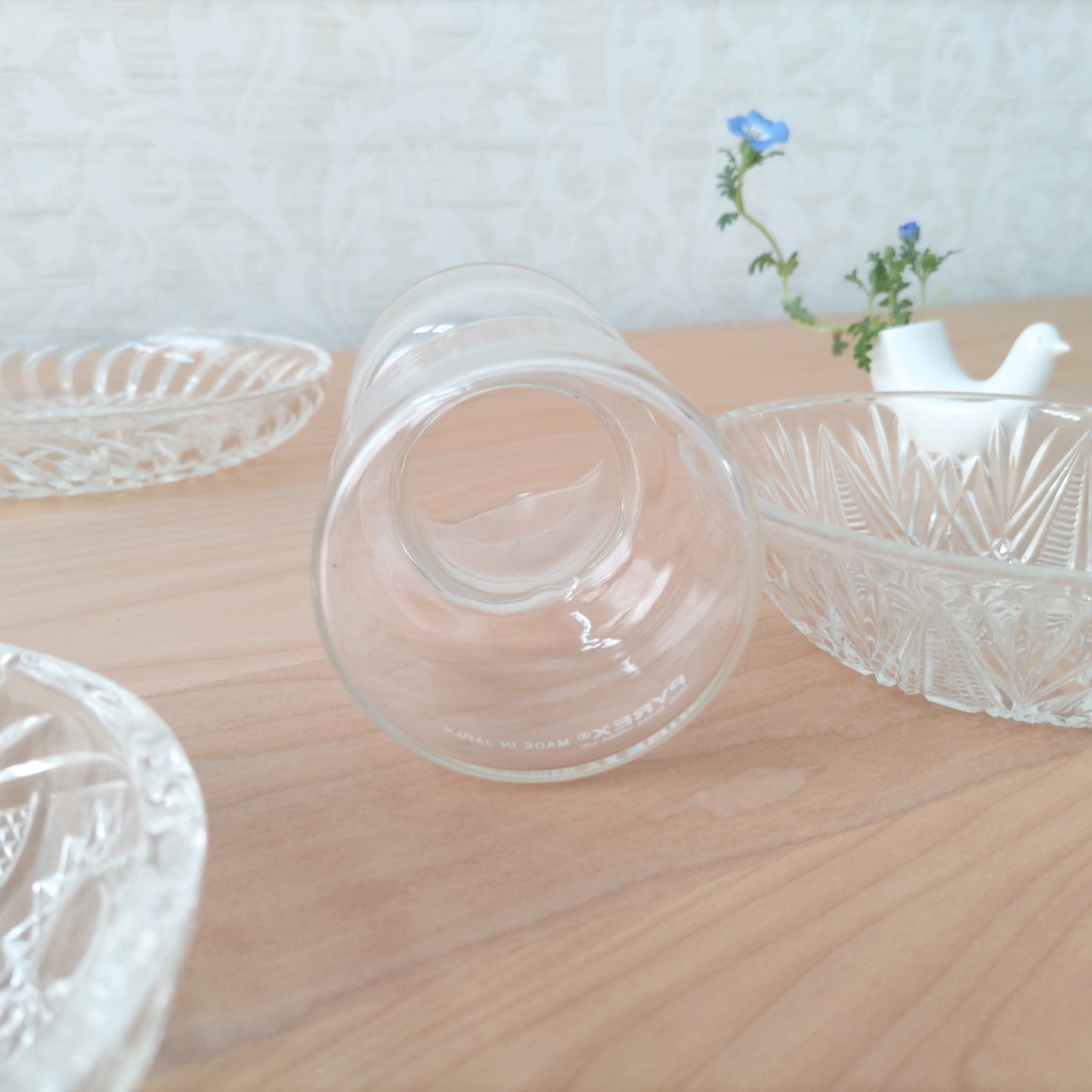 砂時計のようなユニークなフォルムが魅力の、JAPAN PYREX製ガラスベース。