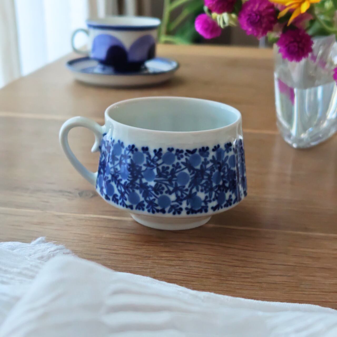 青のグラデーションが織りなす北欧ヴィンテージ、アラビア「Doria(ドリア)」のデミタスカップのご紹介です。