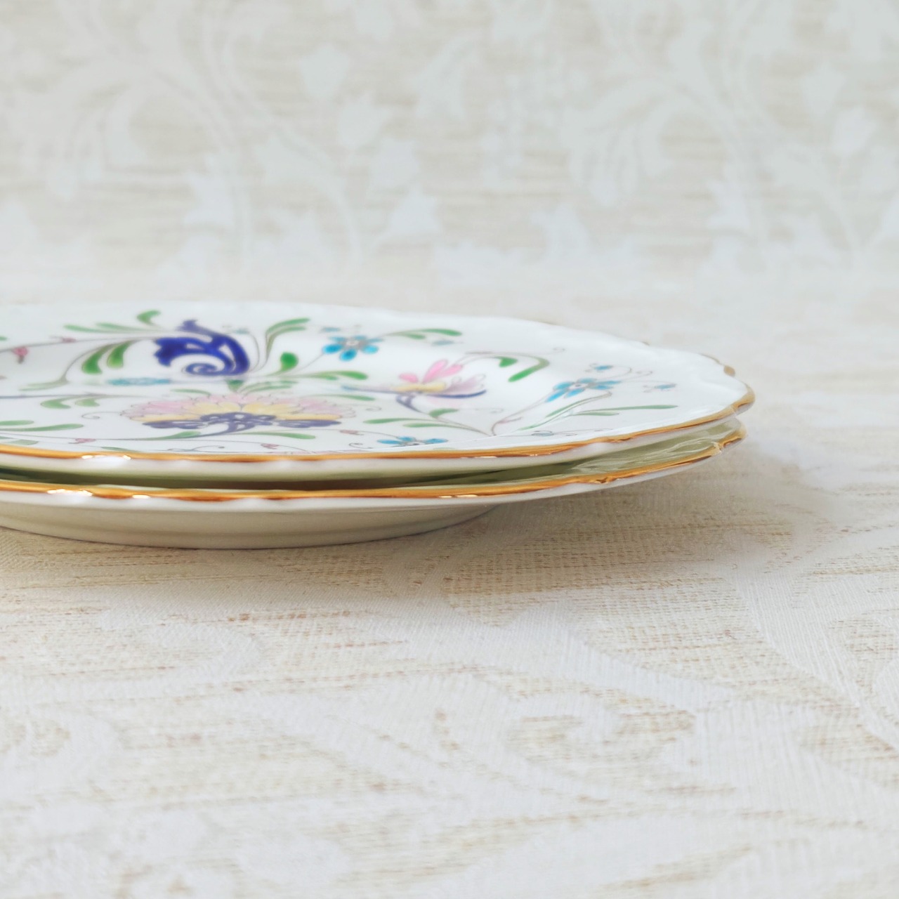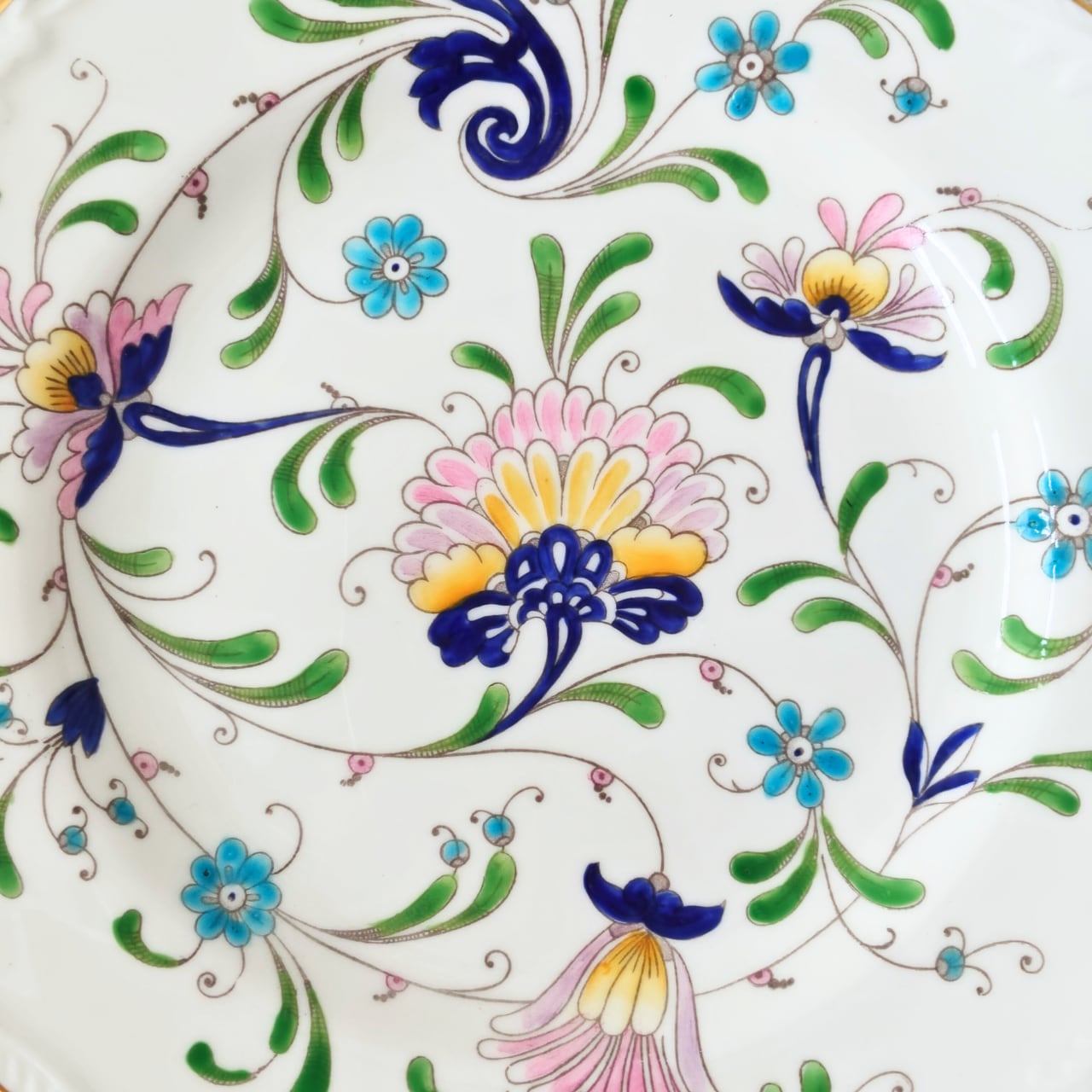 イギリスの名窯、「Coalport(コールポート)」より、華やかなヴィンテージプレートをご紹介します。こちらは、1800年代初期のコールポートのスタイルを復刻した「FANFARE」シリーズ、通称「FANFARE Japan」のパターンです。
