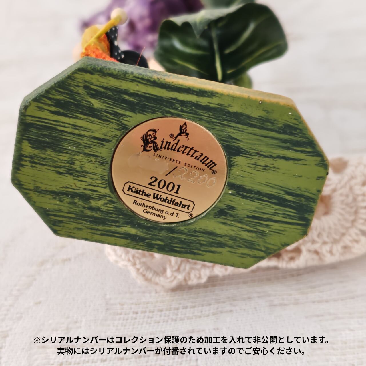 日本ではクリスマスオーナメントで有名なドイツの老舗木工芸メーカー「Käthe Wohlfahrt(ケーテ・ウォルファルト)」。こちらは2001年エディションのKindertum(キンダートゥルム)シリーズになります。こちらのシリーズは、現在は公式での新規販売がなく、流通量の少ない貴重なアイテムになります。