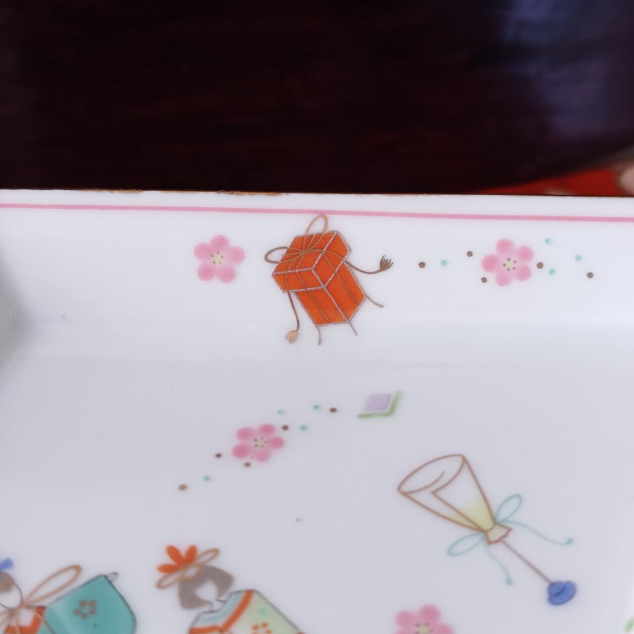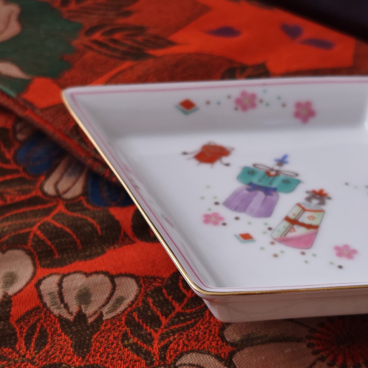 縁起の良いかたち 「菱形」は菱餅を連想させ、 角皿とも丸皿とも違う、特別な雰囲気を食卓に生み出します。 お雛様を飾るスペースが限られているご家庭でも、こちらの一枚をテーブルに置くだけでも春の季節を感じられます。