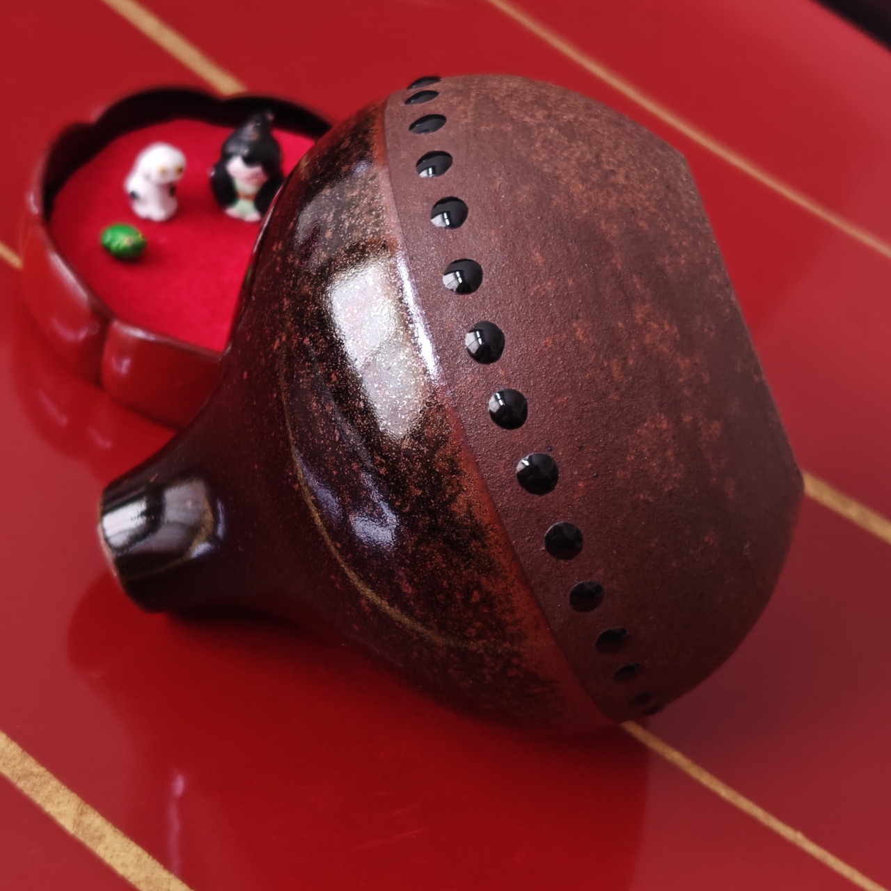 ぽってりした栗のような形が特徴的な、民芸品の一輪挿しです。