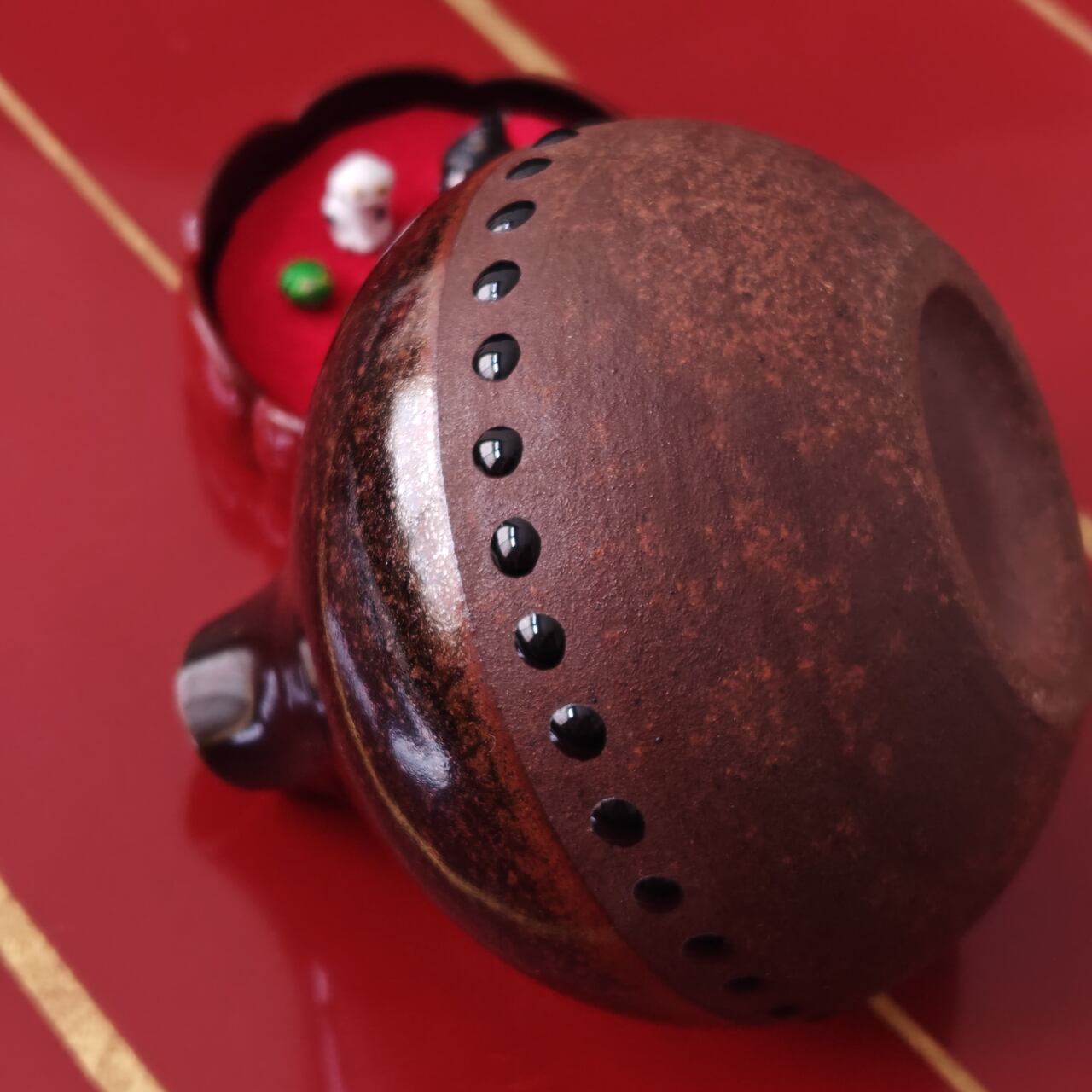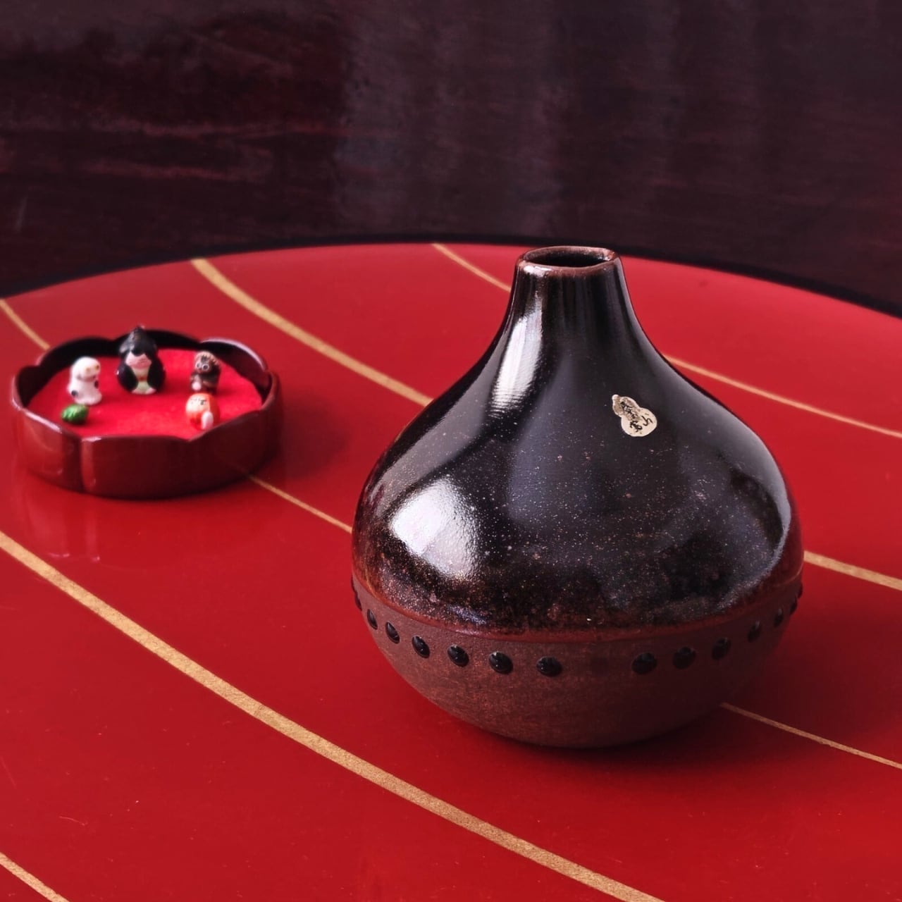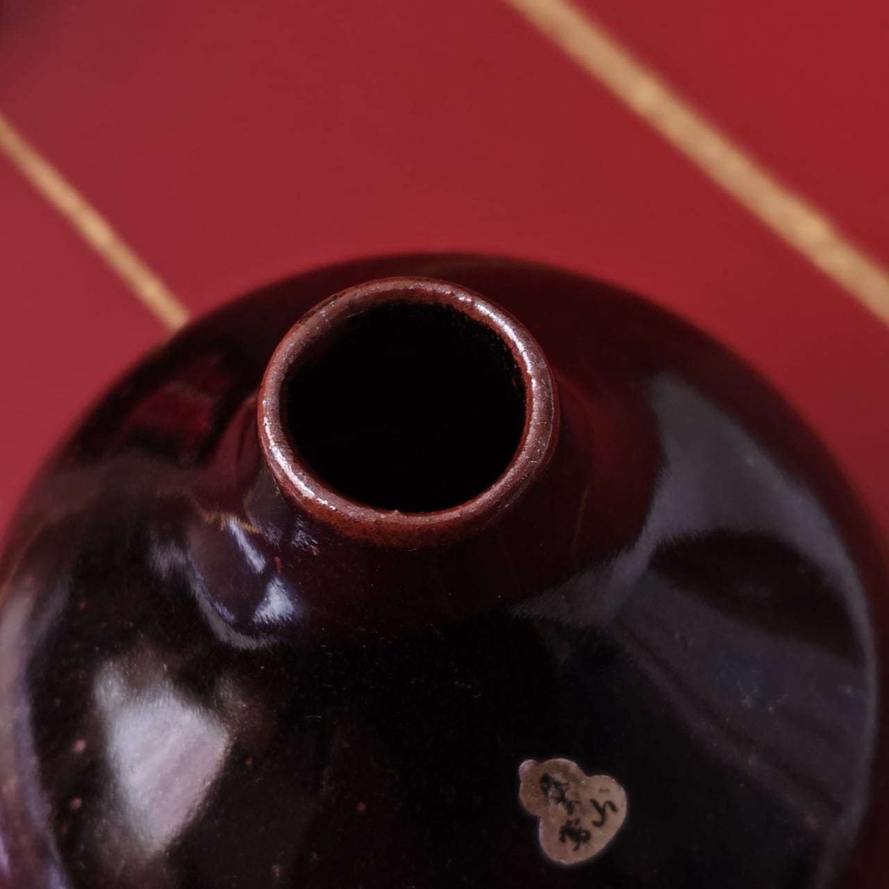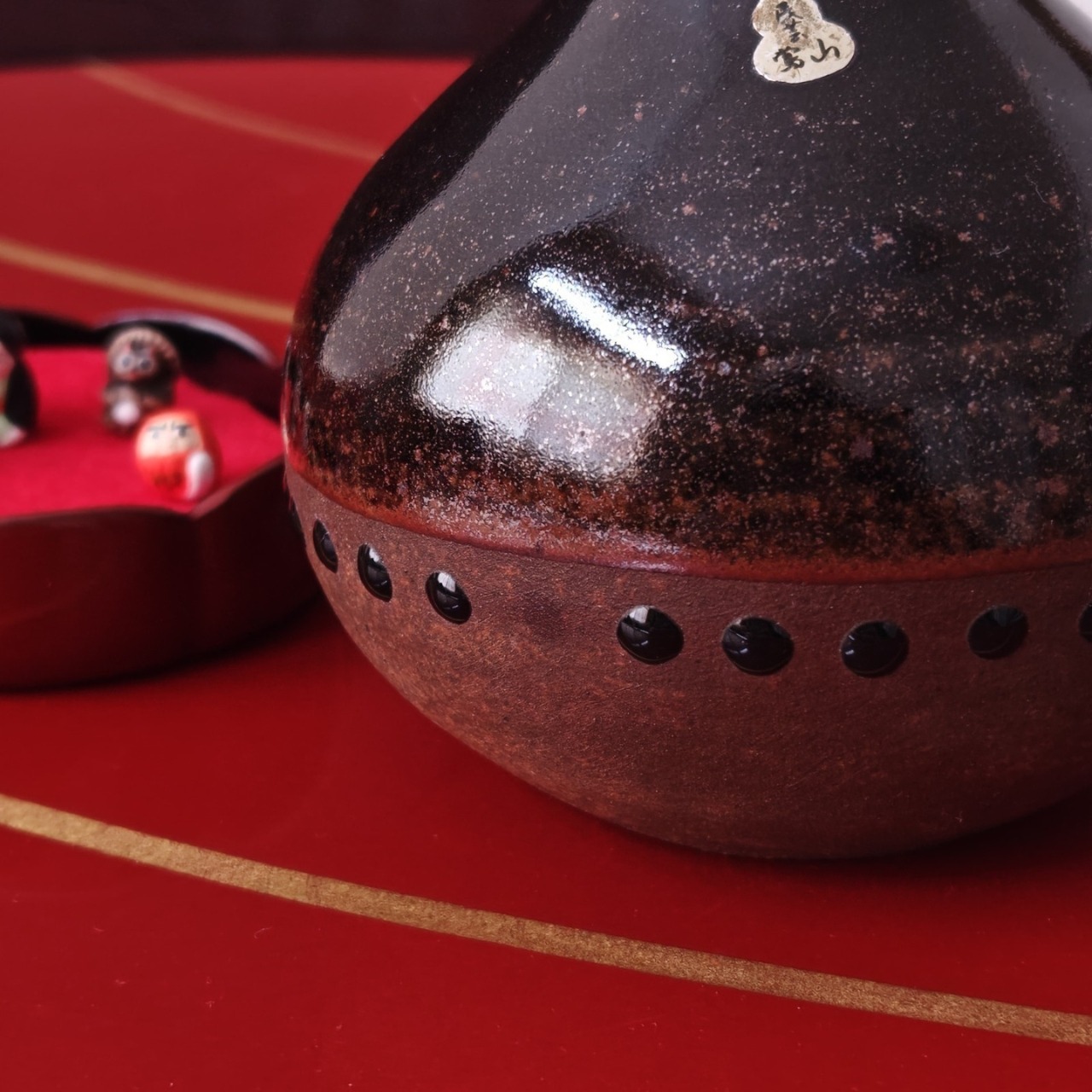 質感や風合いから滋賀県の「信楽焼」のようにも見受けられますが、正確な産地や窯元名は特定できませんでした。ひょうたん型のシールも、デザインの可愛いアクセントになっています。