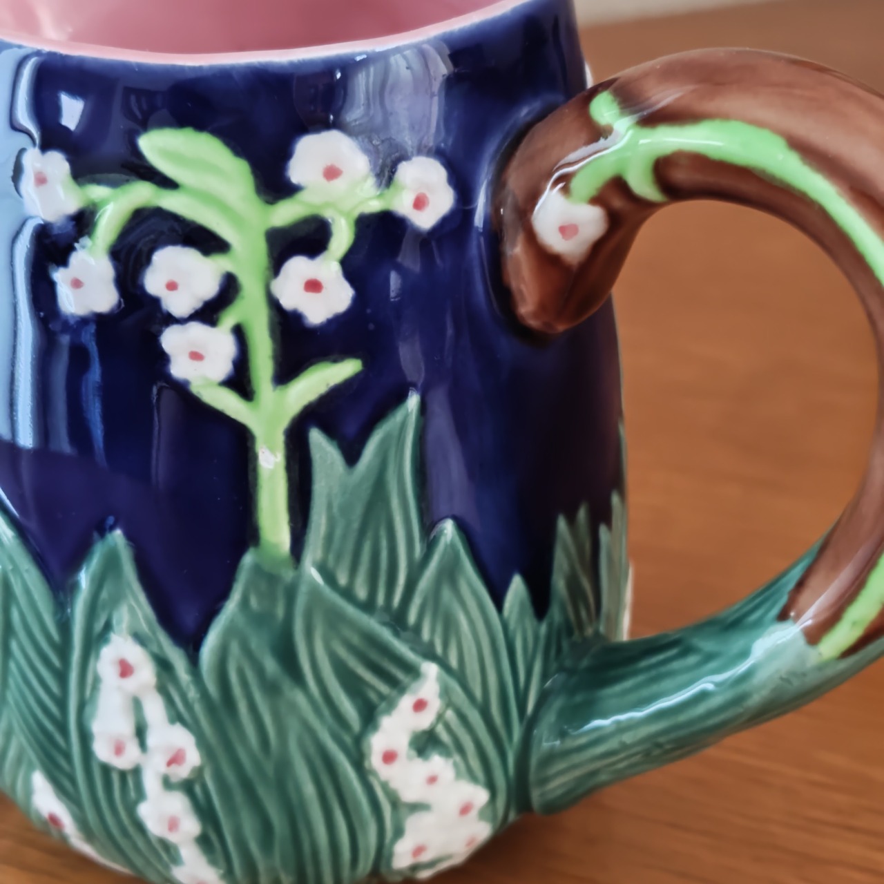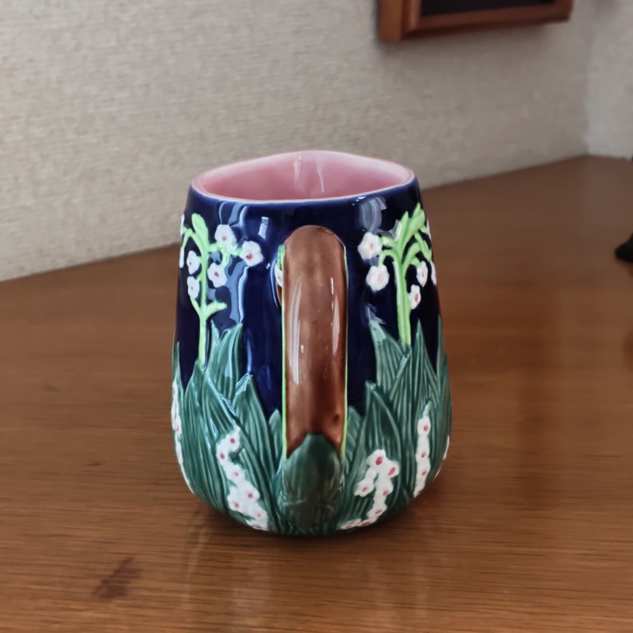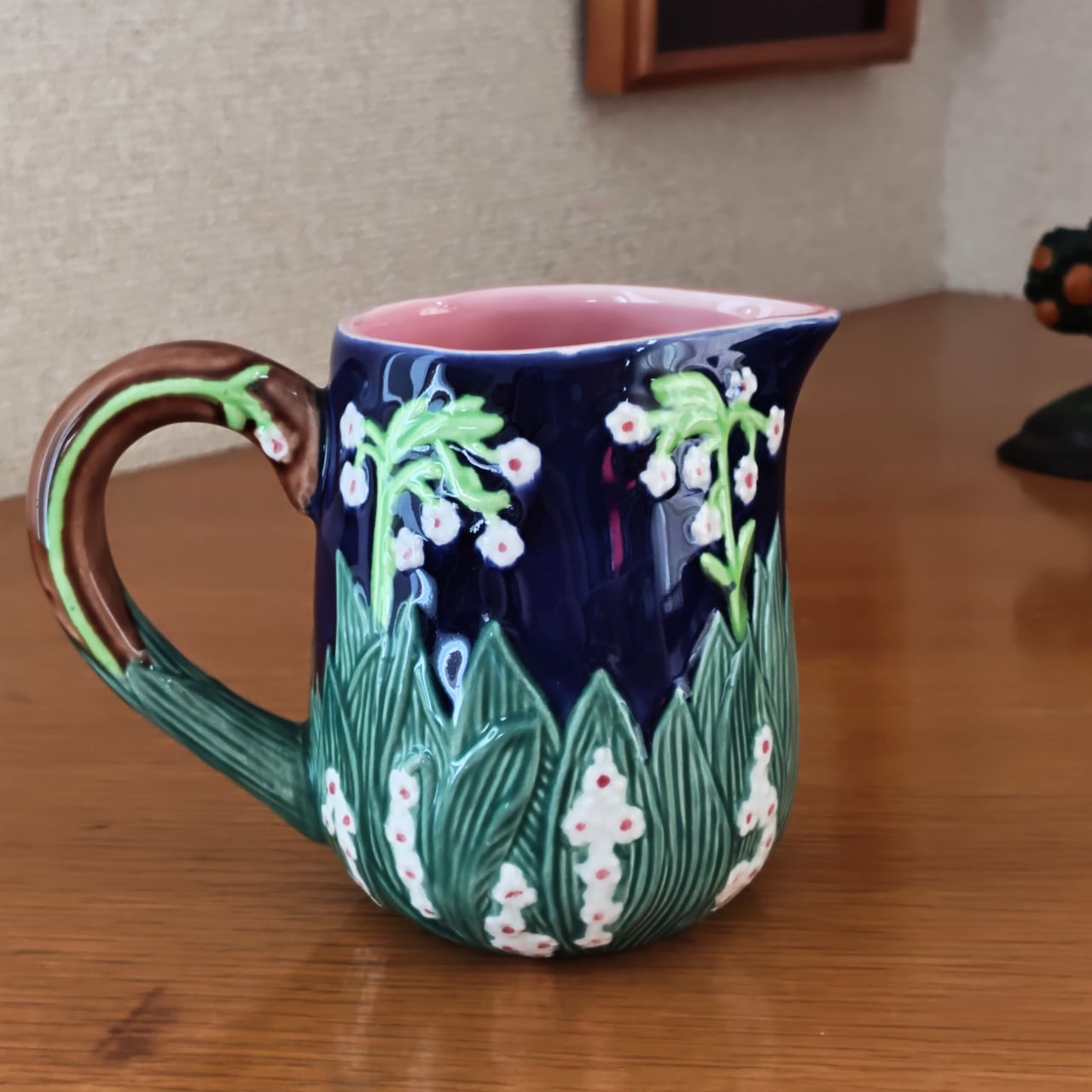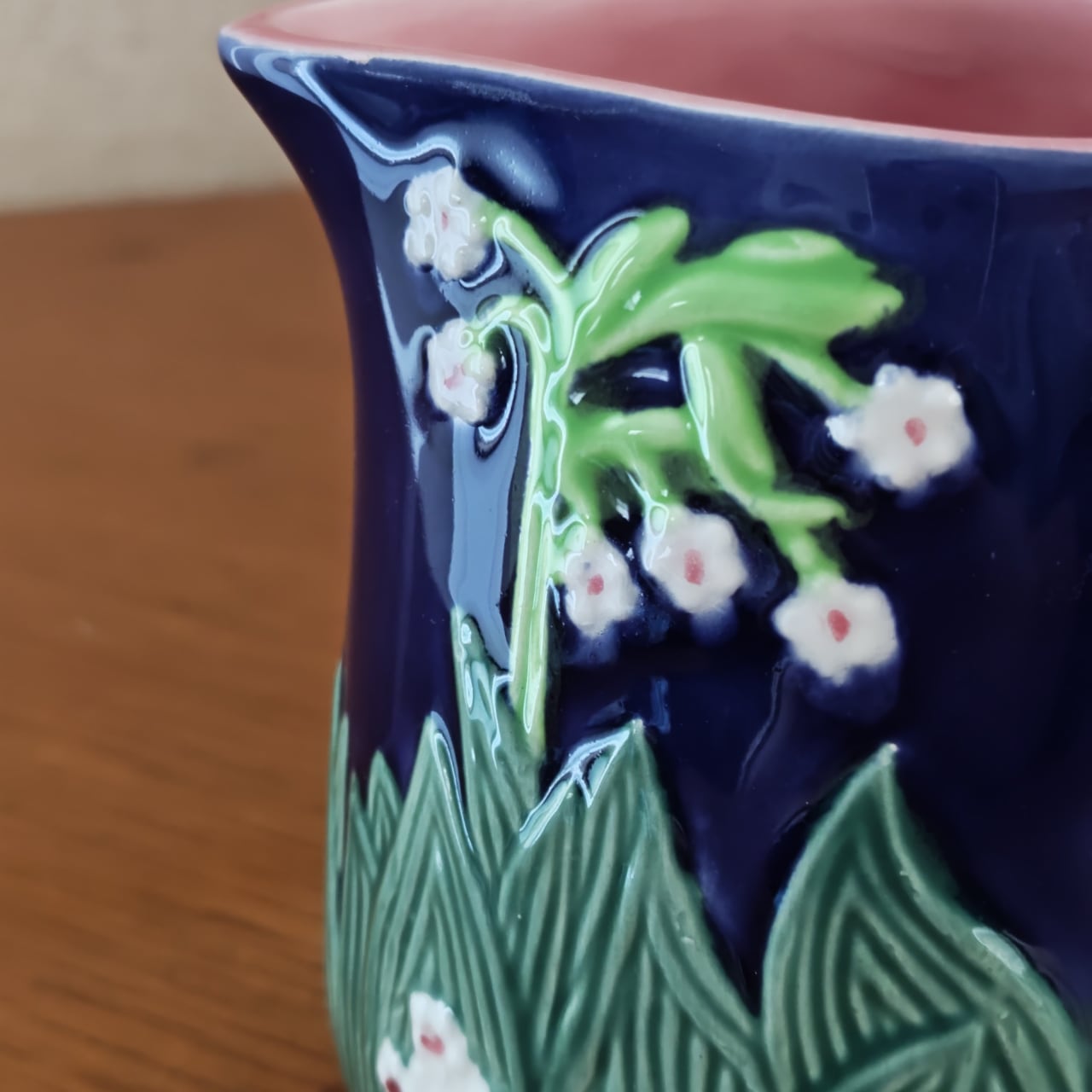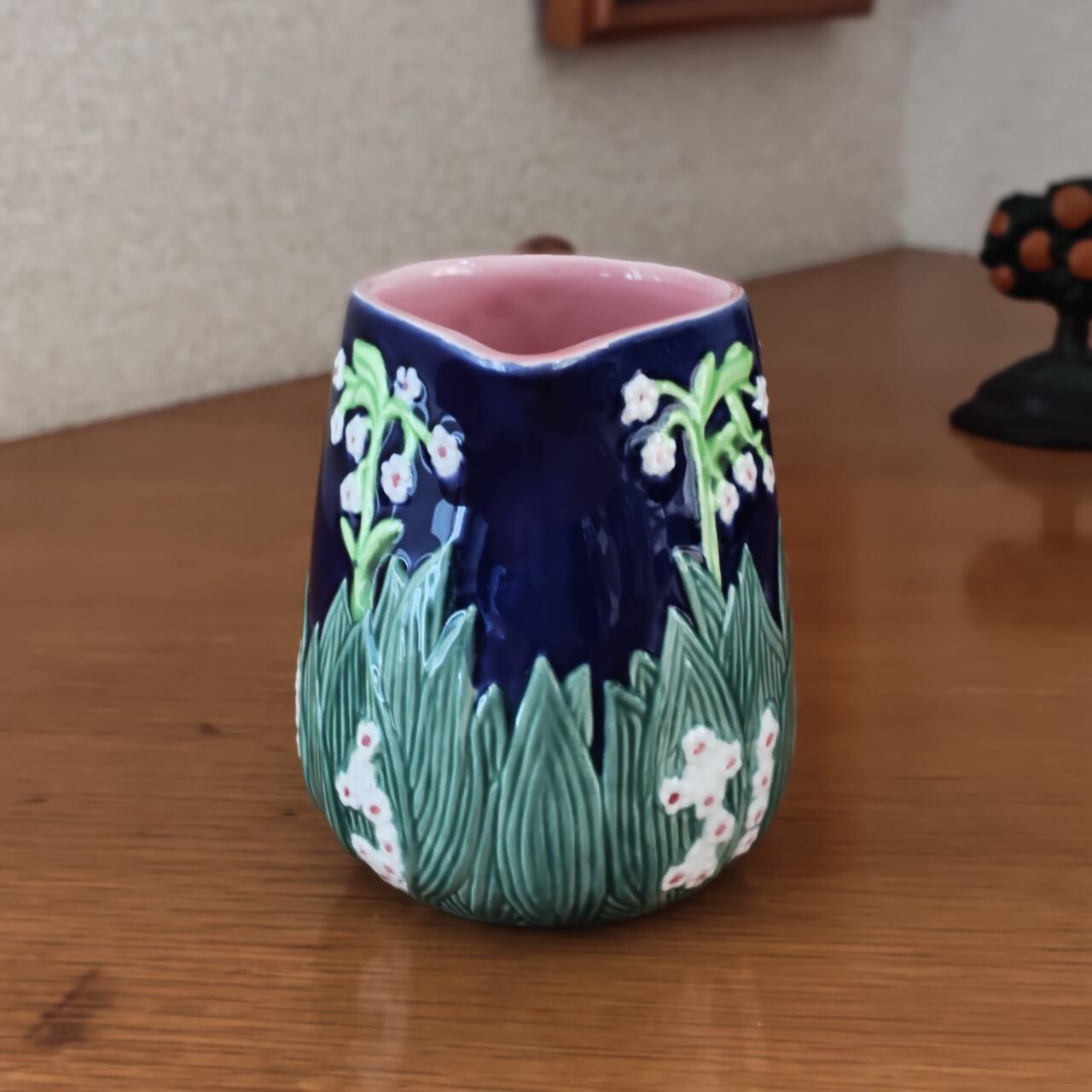 スズランの色鮮やかなマジョリカ焼クリーマーをご紹介します。