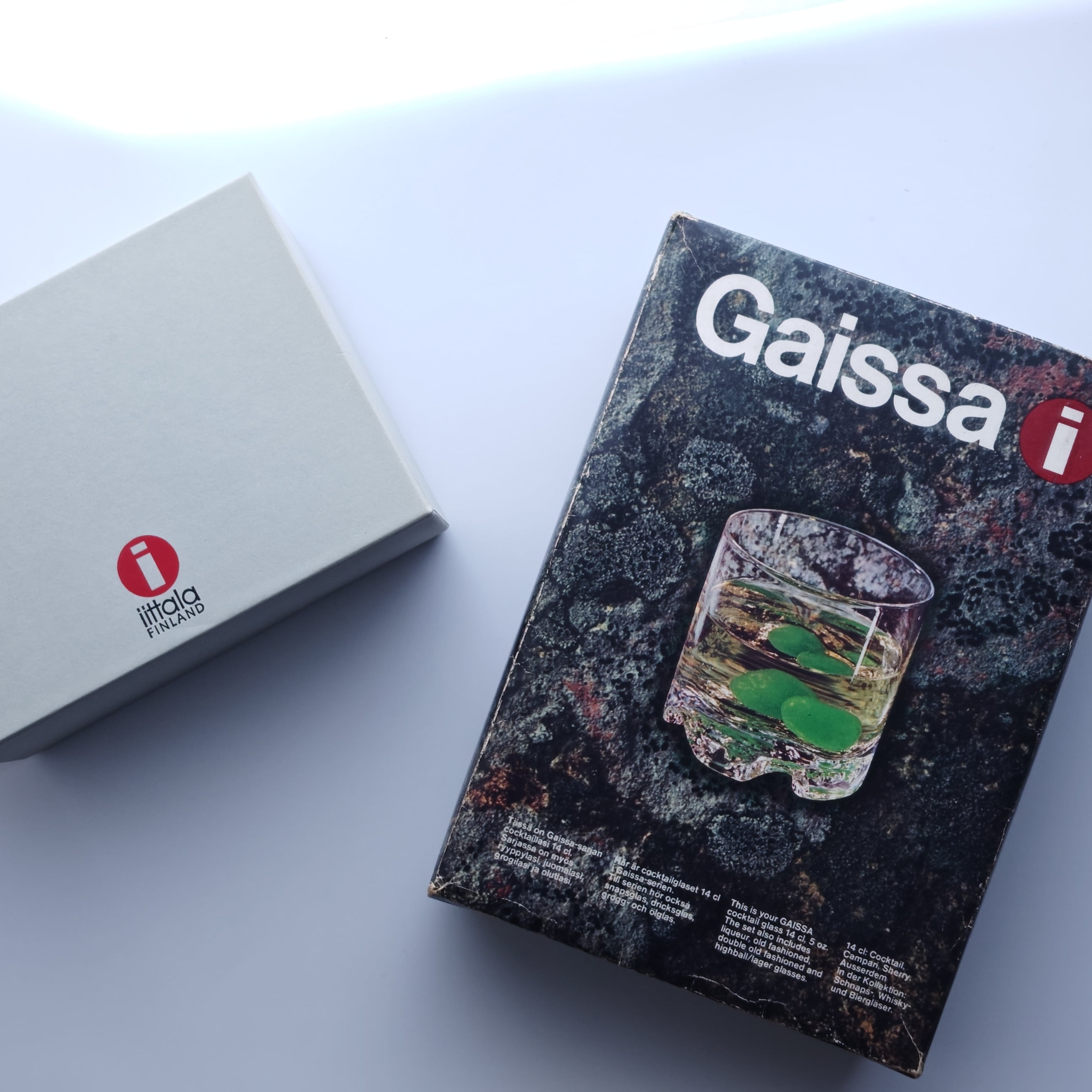 グラスにロゴシールはありませんが、箱にありますロゴからGaissa発表初期の1970年代のものと思われます。