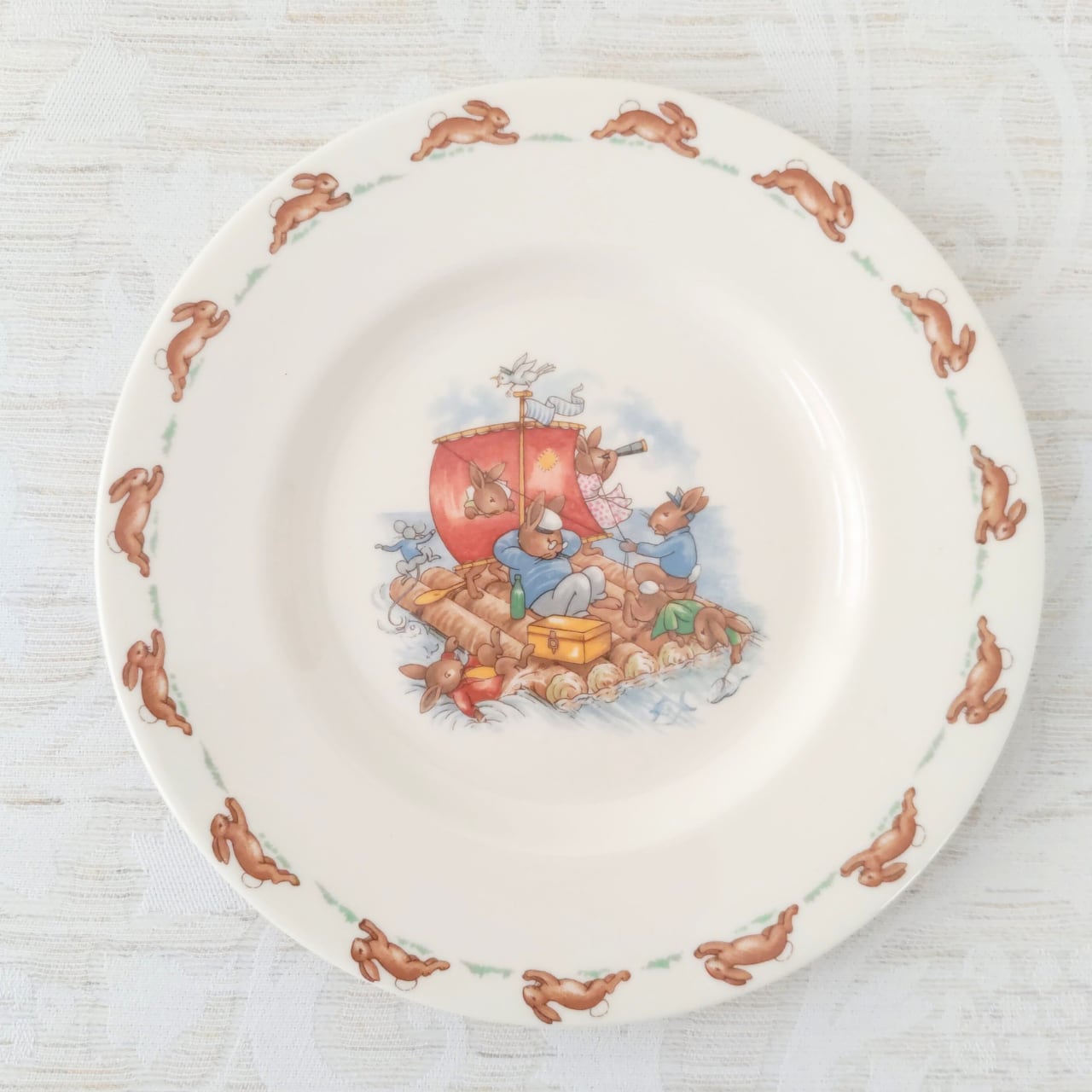 こちらの食器は、世界最大の陶磁器メーカーであったイギリスのロイヤルドルトンが、1934年から発表している子ども向け食器「バニキンズ」シリーズのプレートです。