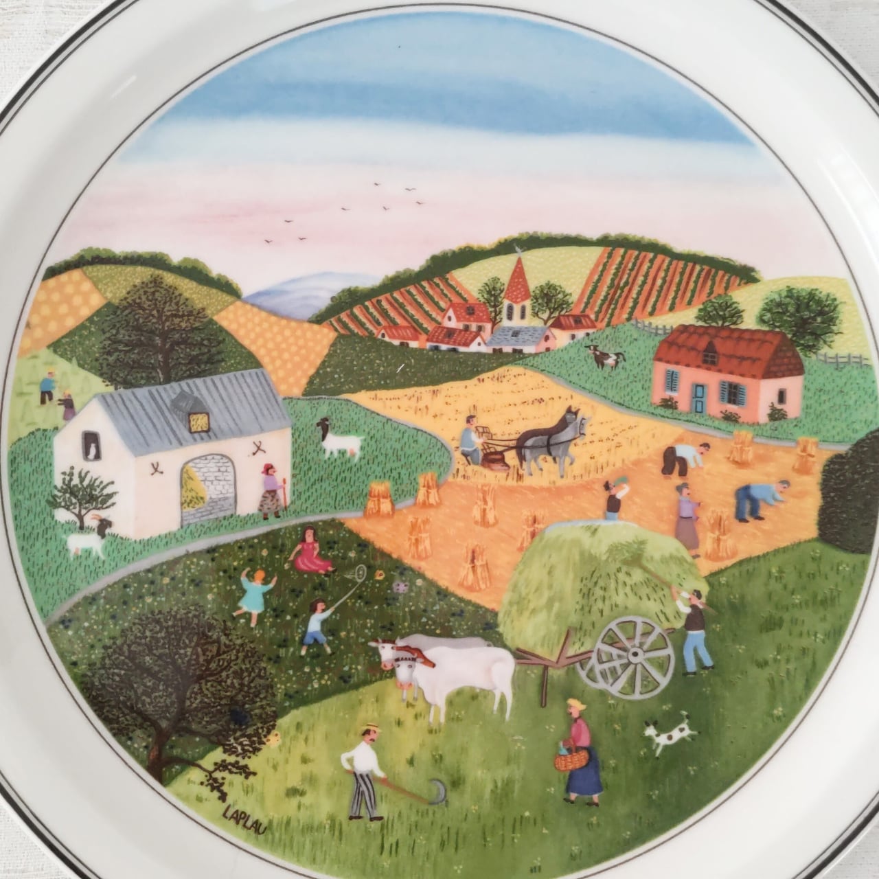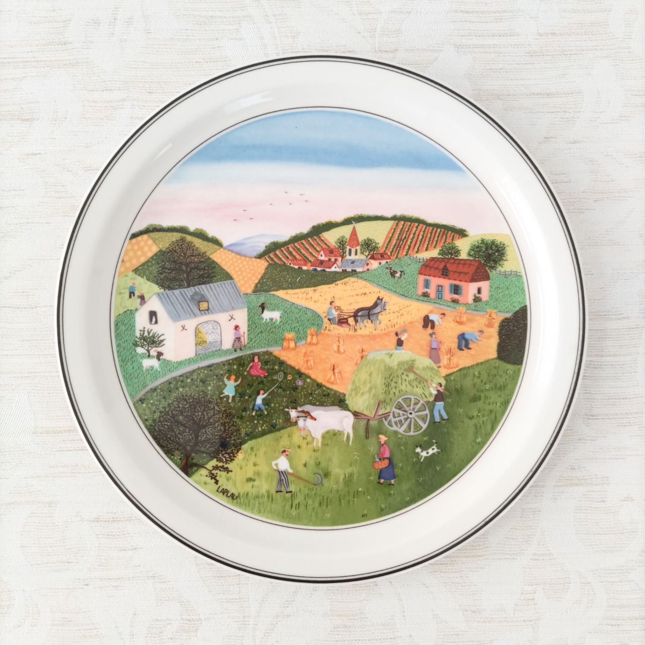 ビレロイ&ボッホが贈る「フォーシーズンズ」シリーズは、フランスの素朴派画家、ジェラルド・ラプロの描いた絵画がモチーフ。彼の温かく、どこか懐かしいタッチで描かれた田園風景や季節の営みが、眺めるたびに絵本を読む時のような心の安らぎを与えてくれます。